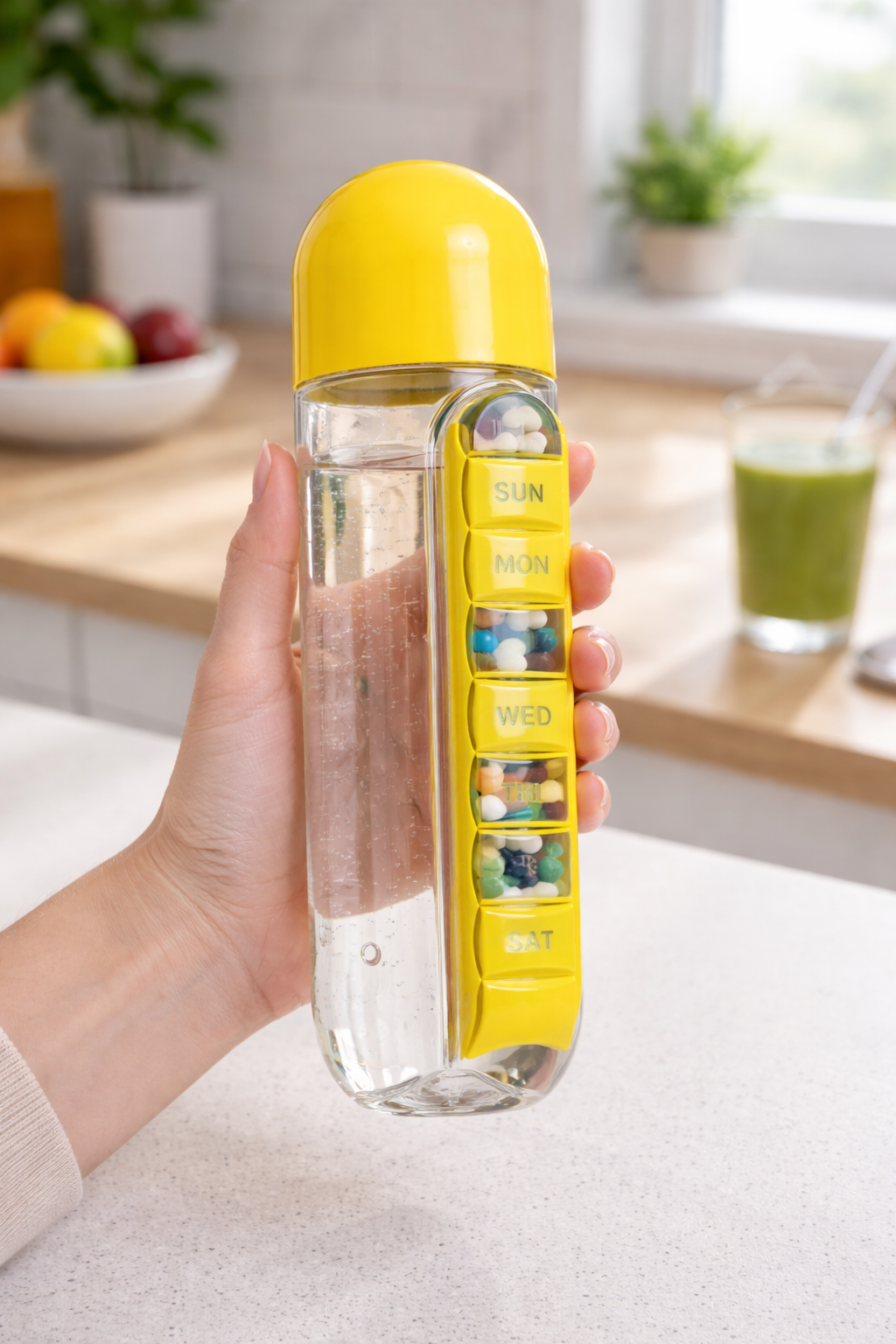 While the bottle is durable, we recommend using it primarily for cold or room-temperature beverages to maintain the integrity of the materials and your pills.